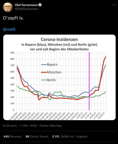 Kurzer Blick auf die größte Ansammlung saufender Idiot:innen in Deutschland in Bezug auf die Inzidenzen. |