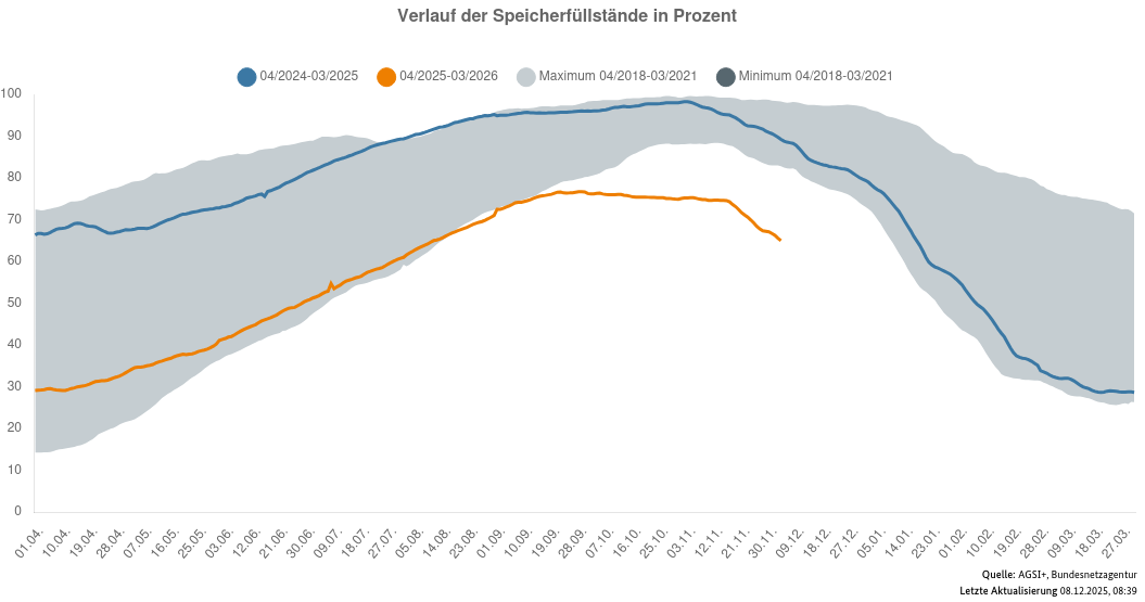 Der Füllstand der Gasspeicher ist in der Tat katastrophal. Das sehen wir im Diagramm der Bundesnetzagentur.