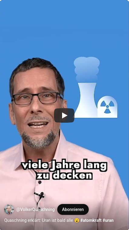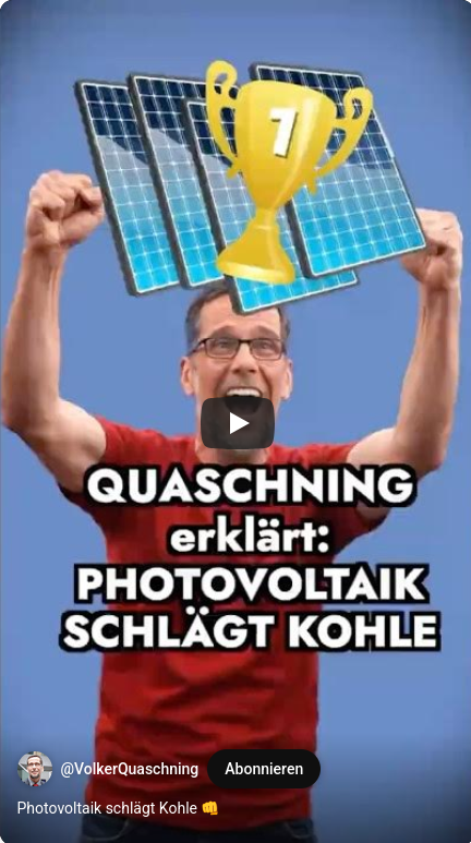 Wie der Zufall es so will, ich erlebe diesen Clip gerade heute, im Zuge einer Dunkelflaute. Der Strompreis ging bis auf 24 Cent/kWh hoch, nicht unter 12 Cent!