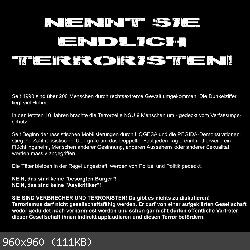 Geht nicht. Würden ihre Beschützer, Förderer und Unterstützer (also der Staat B'R'D, seine Medien u.a.) sie Terroristen nennen, müßten sie ja gegen ihre eigenen Zöglinge die Antiterrorgesetze in Anwendung bringen.