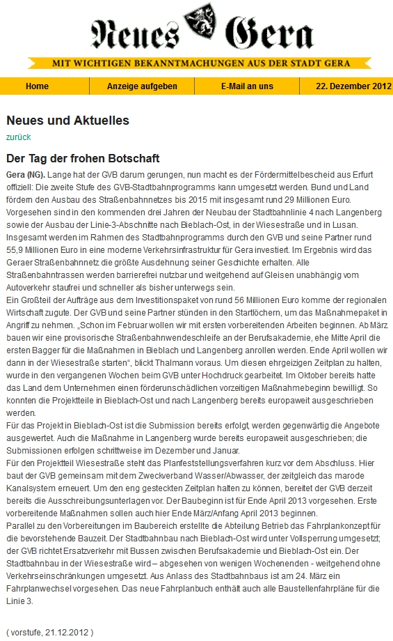 Thema war der nahverkehrsplan, komplett nachzulesen in der blickpunkt strassenbahn, erhältlich am zeitungsstand im hauptbahnhof gera.
